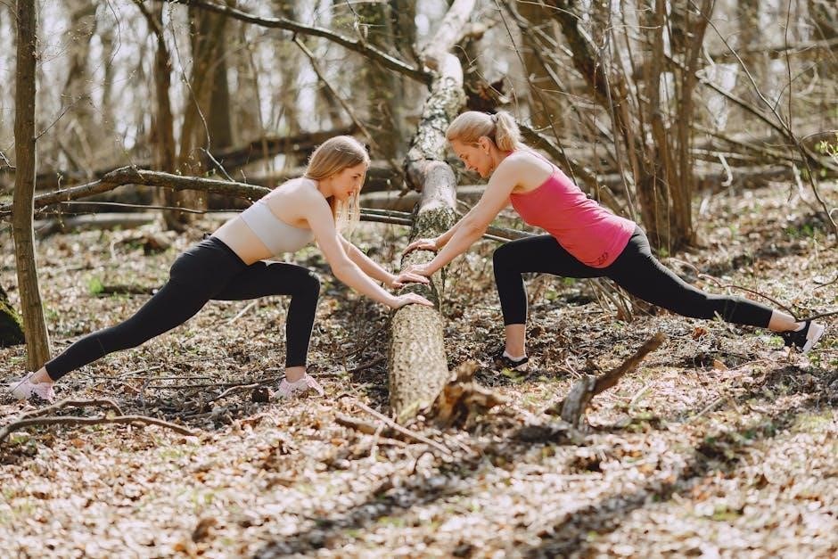 Leg stretches are vital for post-aqua aerobics recovery‚ frequently included in PDF workout routines. Start with a hamstring stretch by extending one leg forward‚ keeping it straight‚ and gently reaching towards your toes. Hold this stretch for 20-30 seconds‚ feeling the pull in the back of your thigh.